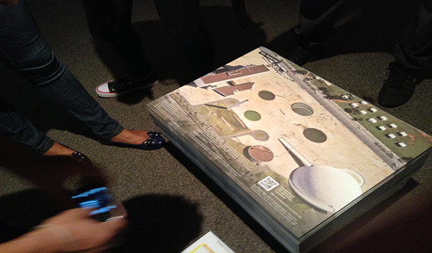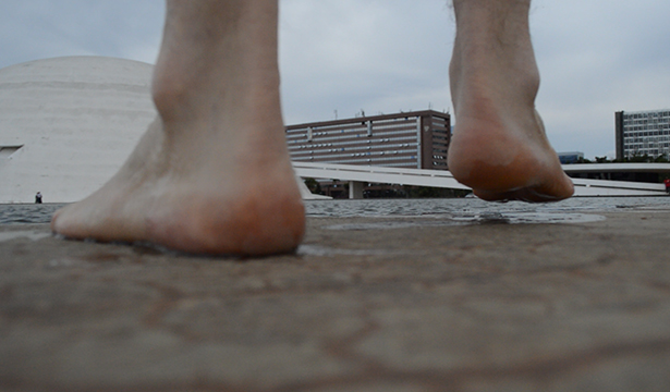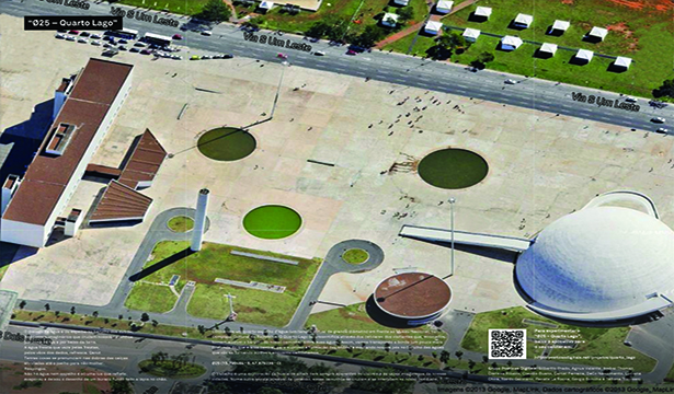 We put a fourth water mirror (a virtual tank with a large diameter) in front of the National Museum, at the Cultural Complex of the Republic. With mobile devices, we transpose the edge (a bit deeper than the central area, to suppress the formation of waves) and dipping our feet in the sound of the waters that become audible as we walk.
