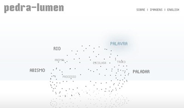 We have a virtual blue cube on the web with a stone on its base. Upon accessing it, the interactor writes a word and chooses a place to put it. The words can overlap, or combine with others spread and scattered around the cube. In the gallery, there is a virtual stone, inside a cube with blue LEDs (8X8X8), which responds to the interventions, varying with the intensity and frequency of light, according to the choices and nominations.